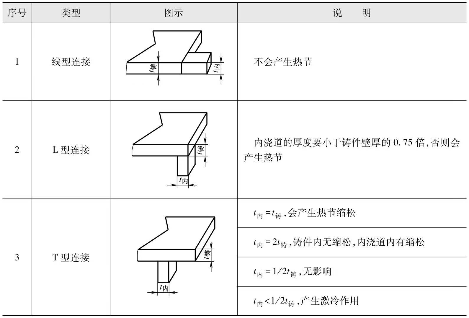 表-11 常見(jiàn)橫澆道與內(nèi)澆道的搭接方式及要求