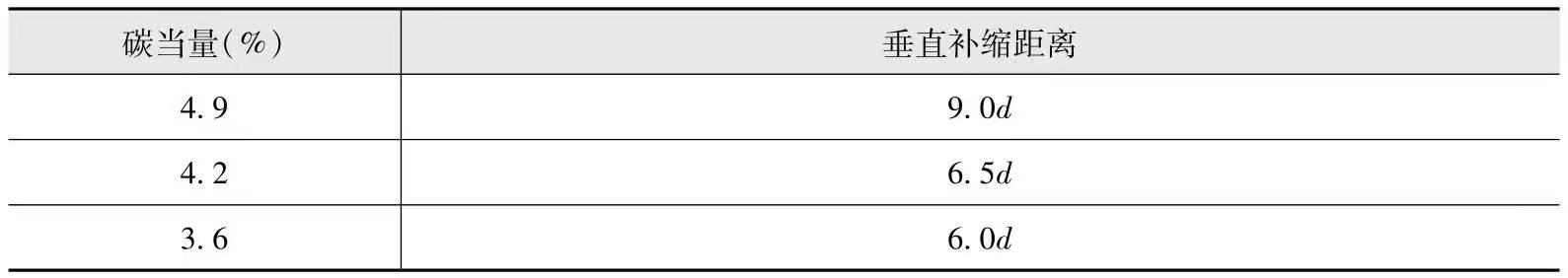 2)冒口的垂直補(bǔ)縮距離。冒口的垂直補(bǔ)縮距離可以根據(jù)碳當(dāng)量確定,具體值可參考表-17。