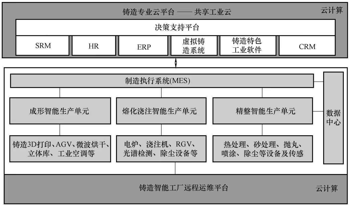 (2)智能生產單元 它將鑄造過程劃分成成形、熔煉澆注、精整等智能生產單元,每個單元都將具備信息感知、優化決策、執行控制等功能,并通過軟件技術實現與云端管理管理系統的集成。