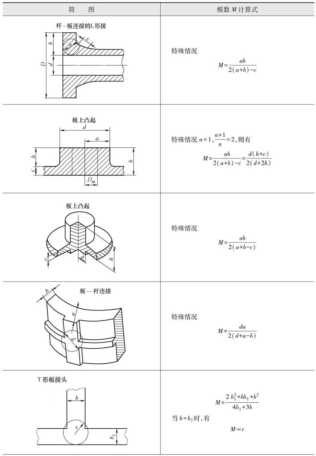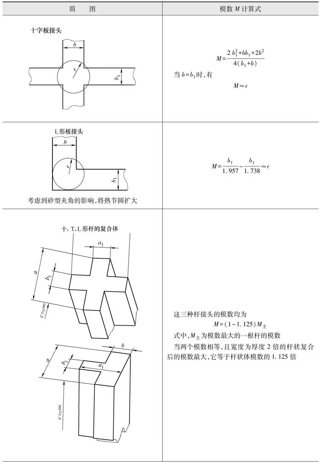 附表1 簡單幾何形狀鑄件的模數的計算公式